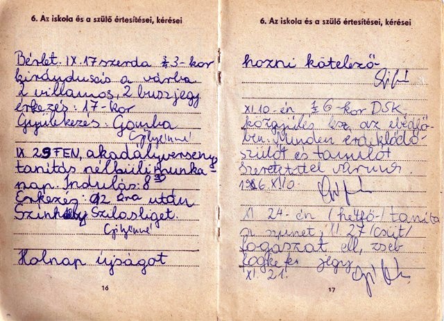 Tipikus ellenőrző-beírások. Gyülekezés a Gombánál, akadályverseny, újsággyűjtés, fogászat